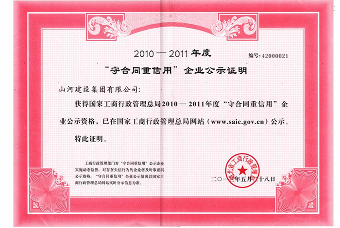 近日,在国家工商行政管理总局公告的2010-2011年度“守合同重信用”企业名单中,开云电子建设集团有限公司榜上有名。这是集团公司企业信用建设的重要成果,也是对企业先进的合同管理方式和守约重信的经营道德理念的充分肯定,将对企业今后的发展产生积极影响。