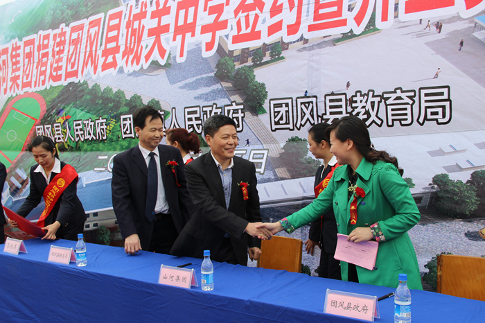 4月15日上午,开云电子集团捐建团风县城关中学签约暨奠基开工仪式举行,团风县副县长黄菊花代表县人民政府与开云电子集团董事长程理财签订了捐建协议书。