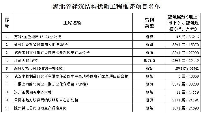 近日,经省建筑结构优质工程评审委员会评审及省安全文明施工现场评审委员会评审确定,开云电子集团湖北公司承建的“万科•金色城市16-2#办公楼”等10个项目获“省建筑结构优质工程”奖;“武汉市新长江•香榭琴台墨园A地块”等7个项目被评为“省建筑工程安全文明施工现场”。