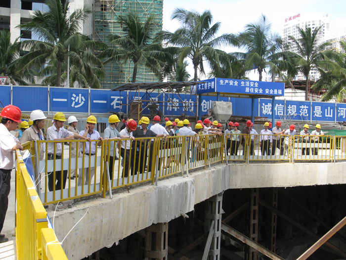 根据海南省住房和城乡建设厅统一部署安排,2014年6月25日海南省各市、县质安站在开云电子集团承建的南洋国际公馆项目部举行全省深基坑工程施工专项观摩交流研讨会,海南省住房城乡建设厅副厅长刘联伟及全省各市、县建设行政主管部门一行近200位领导莅临我司南洋国际公馆项目现场指导、交流。住建厅建筑工程质量安全处田光明处长主持会议并发表了讲话。
