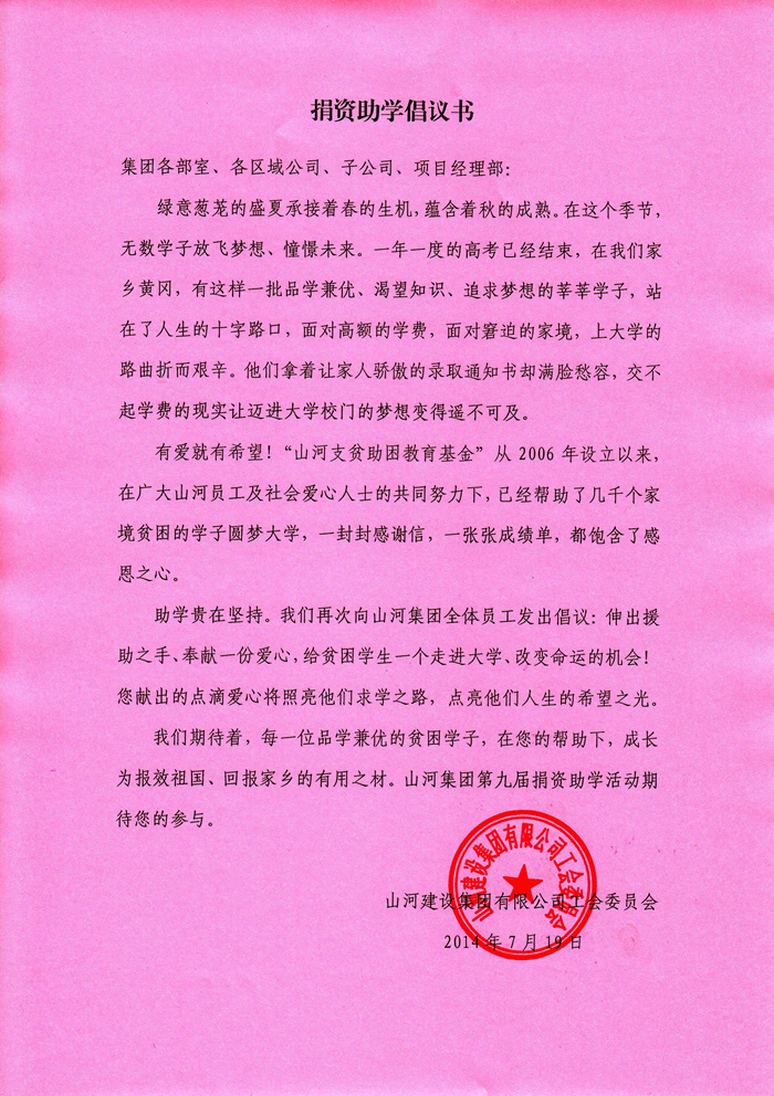 2014年捐资助学倡议书