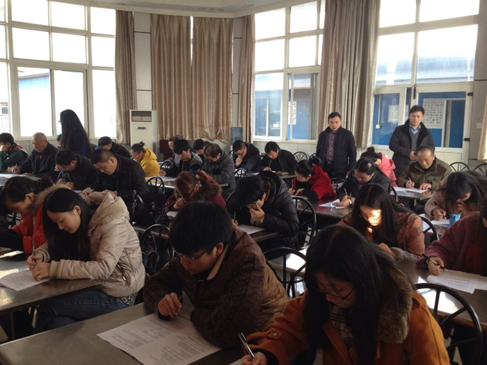 考试时间定于2014年12月13日下午14:00-16:30,考虑到地域分布因素,集团总部设置了四、五楼两个考场,主要为总部、湖北公司及所辖项目部会计人员考试提供场地,其他区域公司、地产子公司、专业子公司也在本单位会议室安排了考场。考试采取闭卷形式,并通过现场监考人员备案、远程视频监考、考卷A、B分类、考前发放试卷至监考人等方式,确保了本次活动的公开、公平与真实。