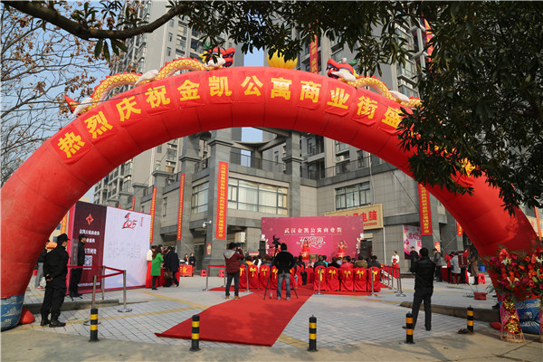 金凯公寓位于沌口经济开发区,是根据武汉经济开发区经济发展需要而建成的商业、居住为一体的员工公寓,致力于为开发区企业员工提供一个安居乐业的生活场所。此次商业街投入运营,将为周边商户、住户提供更丰富、更便利的服务。