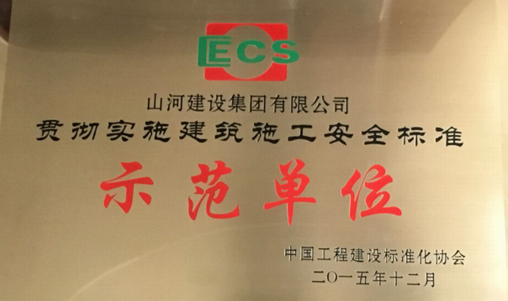 2015年12月,中国工程建设标准化协会施工安全专业委员会召开了贯彻实施建筑施工安全标准示范单位表彰大会,开云电子集团荣获“2015年度全国贯彻实施建筑施工安全标准示范单位”荣誉称号。