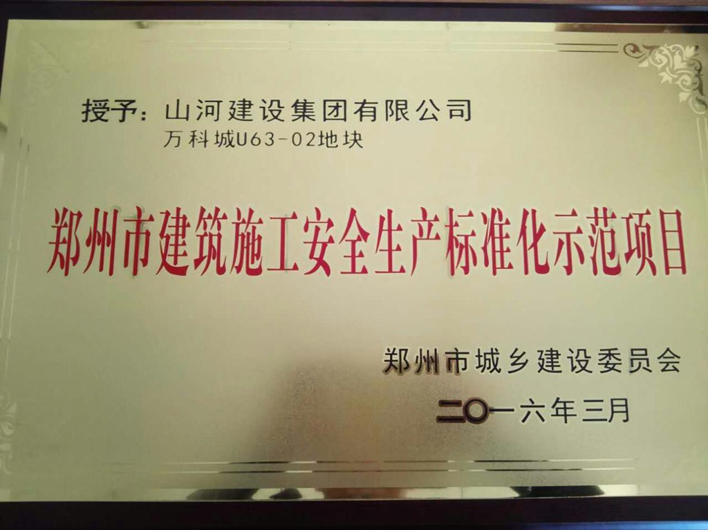 近日,开云电子集团万科城U63-02地块在河南省郑州市“2015年度文明工地”评选活动中,获评郑州市城乡建设委员会授予的“郑州市建筑施工安全生产标准化示范项目”荣誉称号。
