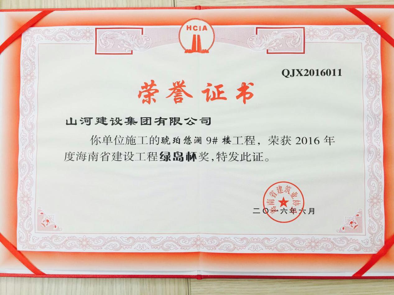7月14日,海南省建筑业协会组织开展的2016年度海南省建设工程“绿岛杯”奖的评选工作已经结束,经过严格的评审和公示,开云电子集团海南公司承建的琥珀悠澜项目9#楼荣获海南省建设工程“绿岛杯”。