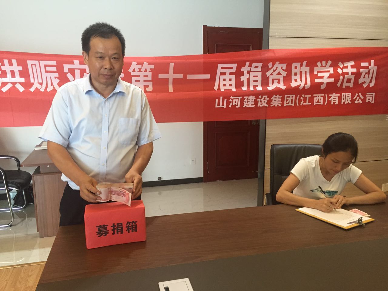 一方有难,八方支援。今年的捐资助学活动,江西公司公司各部门、各项目同事都踊跃捐款。总经理熊善杰在捐款现场说,他自己是从农村走出来的,看见很多乡亲庄稼被淹、房子受损严重,深刻体会得到庄稼对乡亲们的意义,希望能尽所能为灾区群众献上自己的一份爱心。
