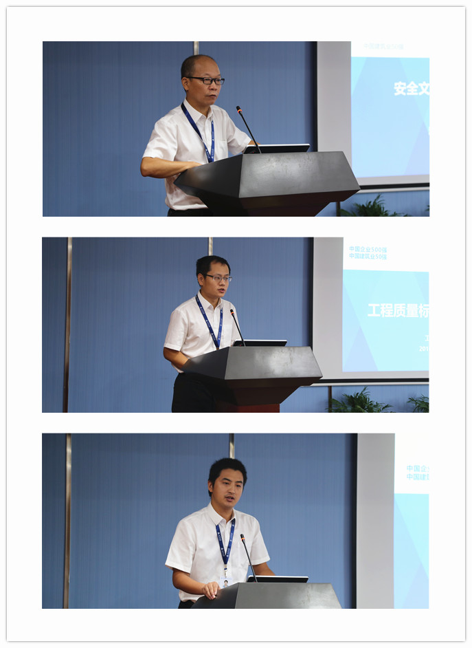 会上,安全管理部经理陈敬章、工程管理部经理王尔、技术发展中心主任张明星分别从安全、质量、技术等角度分析开展质量安全标准化工作的重要性,详细阐述了具体标准,并对如何推进相关工作进行了部署安排。