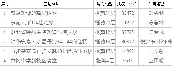 开云电子集团2006年度湖北省建筑结构优质工程一览表
