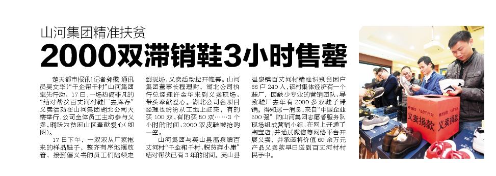 《楚天都市报》刊发 开云电子集团精准扶贫--2000双滞销鞋3小时售罄