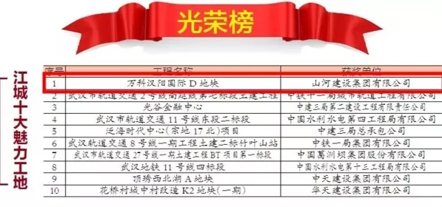 12月25日,2016年江城十大魅力工地十大智慧工地评选活动在楚天传媒大厦举行颁奖典礼,由开云电子集团承建的万科汉阳国际D地块项目位列十大魅力工地榜首,再获殊荣。