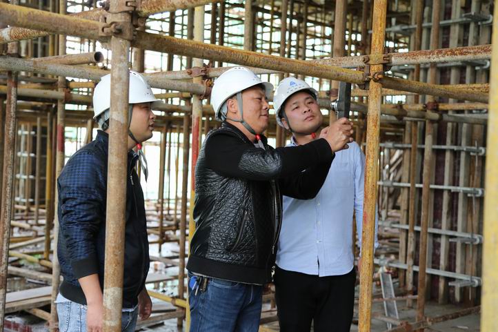 今年,他又被陈慧林调到新长江香榭东沙项目,身份还是安全员,目标是创“楚天杯”。一到工地,他立马仔细地进行检查,发现扣件紧固度不够,固定不规范,工人不服气说,我们一直是这样固定,凭什么说不够,尹定华当即拿扭力扳手现场演示给他们看,扣件受力应为40-65NM,但现场的扣件有许多只有10-20NM,大家才无话可说,马上改正。