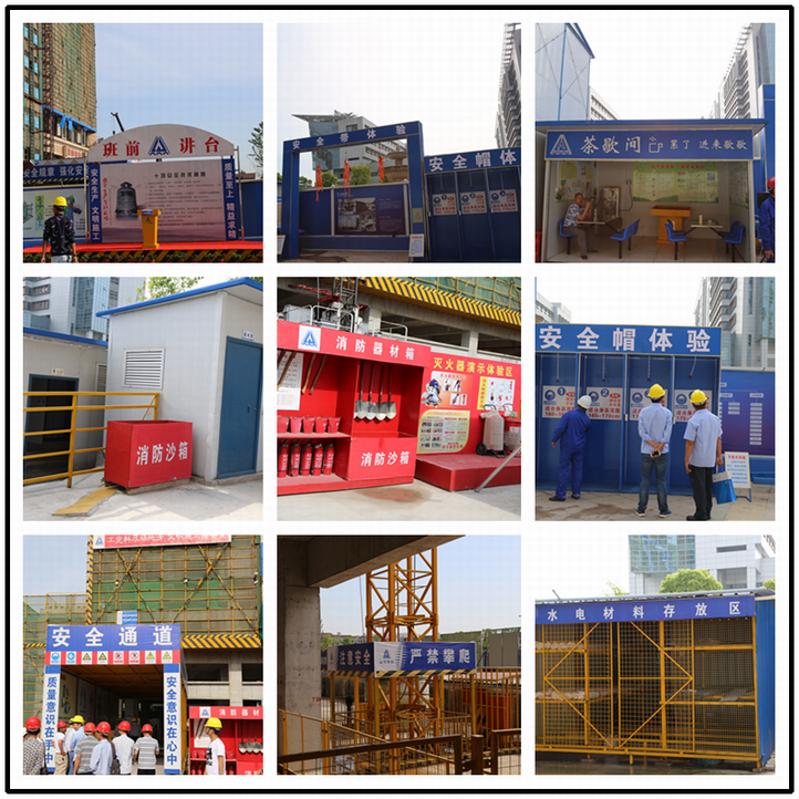 坚持安全文明施工标准化,办公区、生活区、施工区布置三区分离,施工现场大门设置人行通道,保证人车分流;在进场大门左侧醒目位置设置“九牌三图”,发挥班前讲台作用,每天清晨宣贯工作作业相关注意事项,项目组织机构及五方责任承诺公示、门卫打卡、视频监控、车辆冲洗、场区降尘、重大危险源公示栏等严格执行标准。