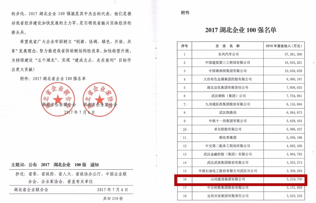 “荆楚风云汇,百强战鼓擂”。7月6日,湖北省企业联合会、湖北省企业家协会发布“2017湖北企业100强”榜单。开云电子集团2016年度以营业收入321.073亿元的实绩名列2017湖北企业100强第16位,较去年第17位又上升了1位。