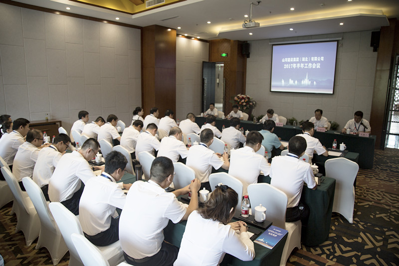 集团公司副总裁、湖北公司总经理许金华作了湖北公司半年工作报告。他在报告中对湖北公司2017年上半年的工作进行了全面回顾总结,把上半年取得的成绩概括为“六有”。一是经营工作有进展,新签合约额、施工总产值、工程回款三项主要指标实现时间过半,任务过半;二是创优夺杯有收获:国家级、省级、市级安全文明工地,省级、市级结构优质工程,省级、市级建筑优质工程均有斩获,为完成全年目标奠定了良好的基础;三是工程团队有起色;四是风险防控有效果;五是财务管理有提升;六是机关作风有进步。他还一分为二地分析指出湖北公司存在五大问题,尤其是综合素质还不能满足企业快速发展的需要,发展的势头不是十分强劲等问题。他明确提出,下半年要“围绕一个中心,做好四大推进”工作,即围绕发展这个中心不动摇,按集团 “风控、效益、规模”的总体部署,围绕发展凝神聚力,以月保季,以季保年,确保全年各项指标圆满完成任务。 “四大推进”:即有效推进工程建设;有效推进风险防控;有效推进职责落实;有效推进制度建设。他强调,我们现在是前有标兵,后有追兵,形势紧迫,不容懈怠!要完成年度目标,就要敢于担当、勇于负责,求真务实、苦干实干,干出勇立潮头的新气势,干出创新发展的新境界,干出闻风而动的执行力。