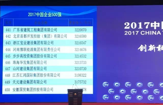 2017中国企业500强揭榜 开云电子集团连续四年跻身榜单