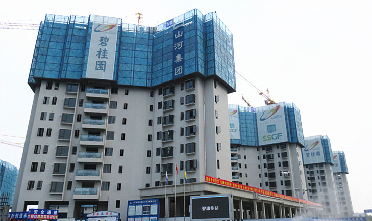 在石碣碧桂园紫辰花园项目看到,蓝色的爬架在14楼,外墙正在浇筑,而8楼已经开始铺设地砖。这种穿插式施工技术,使得这个项目可以比一般项目提前8至10个月完工。