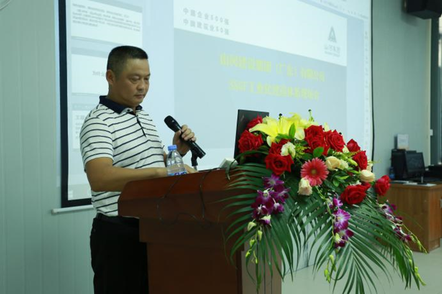 开云电子集团广东公司副总经理赵卫对SSGF新建造体系的发展以及优势与参观人员作了分享,让大家感受到建筑行业一场新革命的到来;紫辰花园SSGF示范项目的项目经理佘志斌就施工过程中的经验与参会人员进行简单交流。