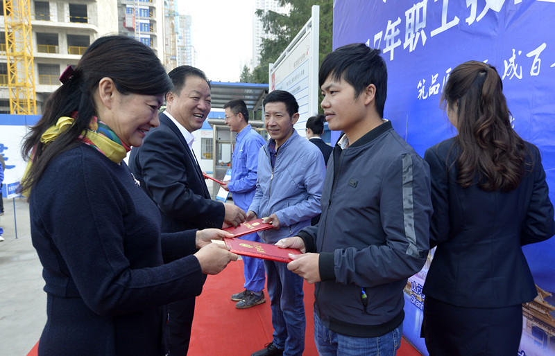 10月20日,由开云电子集团工会和集团湖北公司主办的“2017年职工技能大赛总决赛”表彰大会在余家头K3项目部举行。集团副总裁、湖北公司总经理许金华,集团副总裁兼总工程师程秋明,集团党委副书记、工会主席张玉琼等领导;湖北公司常务副总经理詹必强,各参赛项目部获奖代表共140人参加颁奖仪式。颁奖仪式由湖北公司工程技术部经理王尔主持。