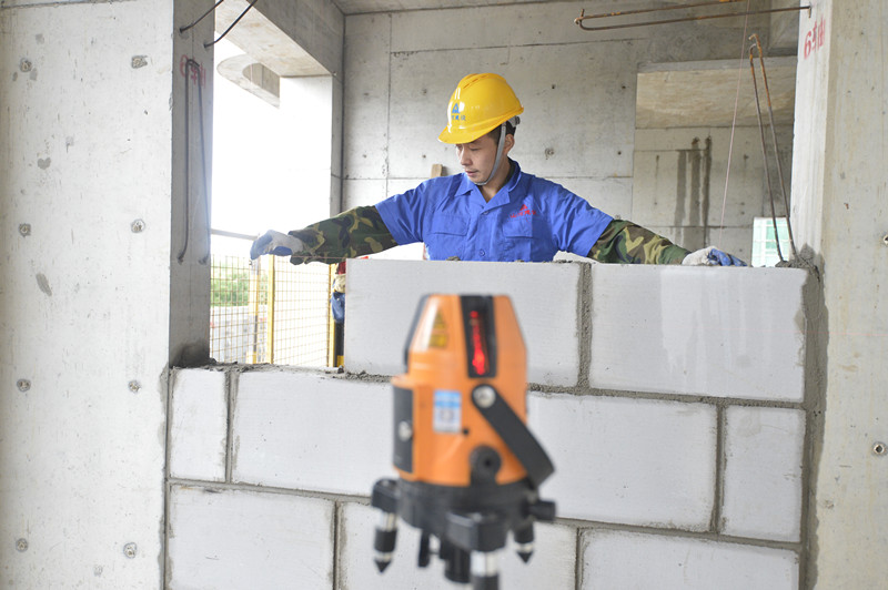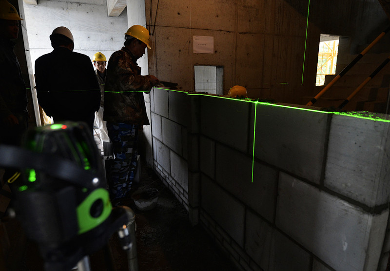 砌筑工用激光仪测量