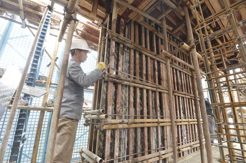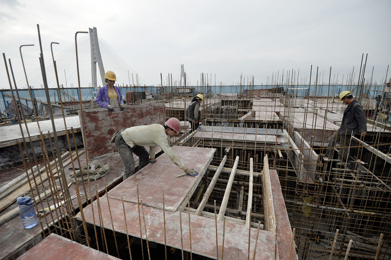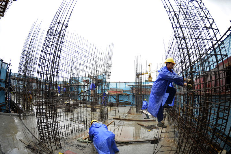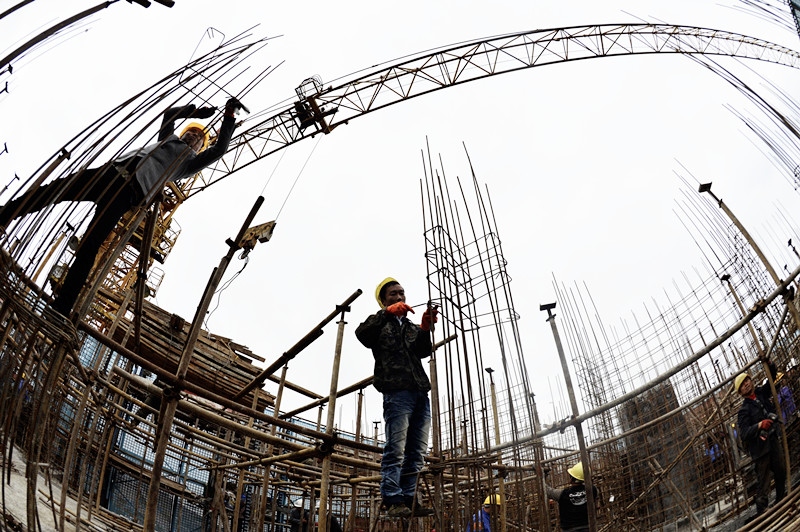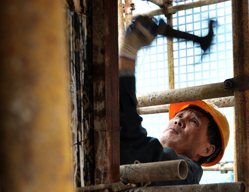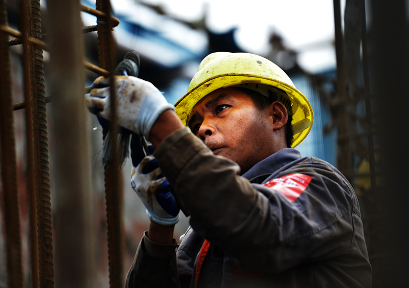 钢筋工“驯服”钢筋构件