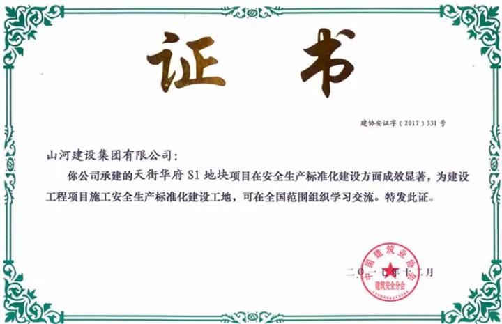 12月13日,中国建筑业协会建筑安全分会揭晓了2017年度“建设工程项目施工安全生产标准化建设工地”名单,开云电子集团海南公司天街华府S1地块项目入围,摘得全国建筑安全文明施工最高奖。这是海南公司继2011年宝安・滨海豪庭1#、2#住宅楼项目获奖之后再获此项荣誉。