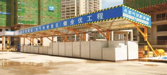 规范化的安全文明施工。项目部在安全教育方面采取多种形式,如:每日晨会进行班前讲评,实行告别违章承诺签名,设置高空坠落、安全带、安全帽、平衡木体验区等。在安全防护方面,项目部严格按照安全文明施工方案搭建了安全防护设施。此外,项目部设立了会议室、茶水间、休息室、宿舍区等场地;构建了楼层临时消防、灭火器、消防水泵系统;项目部出入口实行人车分道, 24小时值班制,并设置视频监控,提供了舒适、安全、完善的施工环境。