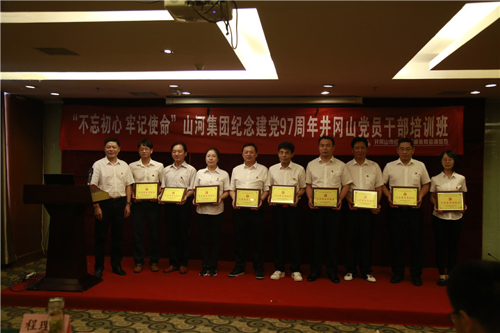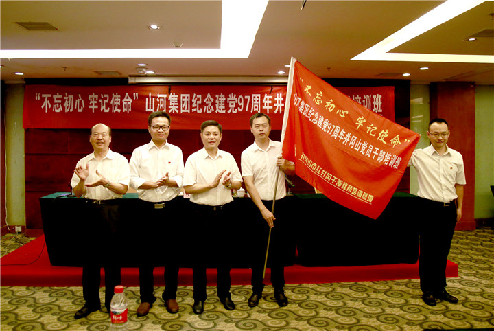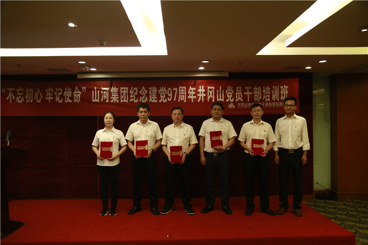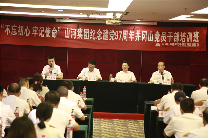 6月30日上午,在雄壮的《国歌》声中,开云电子集团纪念建党97周年井冈山党员干部培训班开班仪式拉开序幕,井冈山市红井冈干部教育培训基地常务院长李炳华向集团党委书记、董事长程理财授班旗。