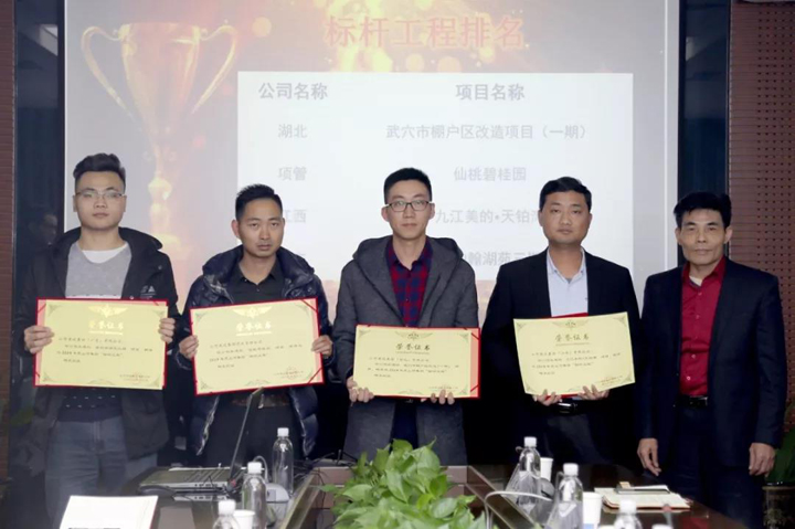 湖北公司武穴市棚户区改造项目(一期)、江西公司九江美的•天铂湾项目、广东公司美的翰湖苑三期工程、项目管理公司仙桃碧桂园项目被评为“标杆工程”。