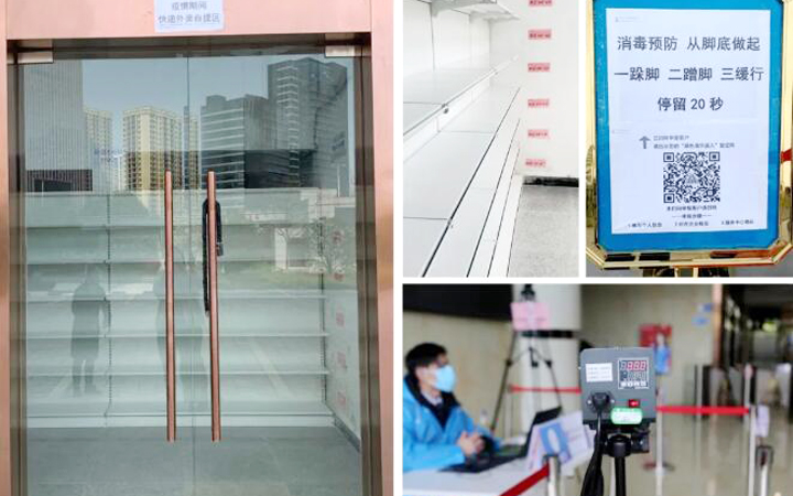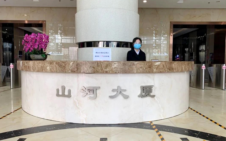 物业服务中心加强对进出车辆及人员的管控,大厦地库通往写字楼的进出口暂时封闭,大堂出入口分开设置。返岗人员均需提前进行登记审核,手机出示准许进入的绿色登记码,统一从大堂入口经测温、消毒后有序进入。