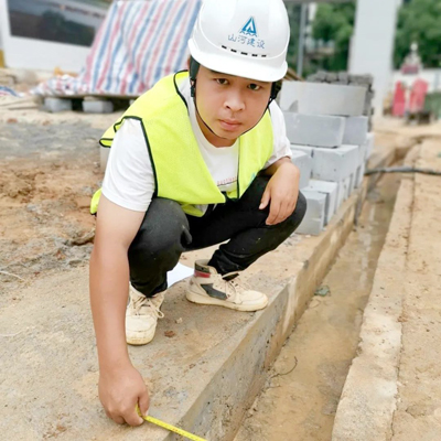 在深圳公司福外小学项目施工现场的各个角落,总能看到一个忙碌的身影,他就是施工员袁湘凯。