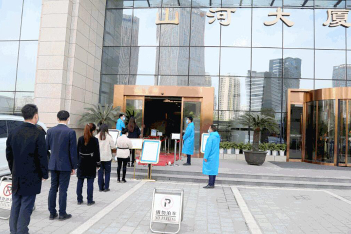 武汉封城以后,物业服务中心立即行动、严阵以待,多次召开专项工作会议,制订了严密的防疫方案,动员多方力量提前采购红外测温仪、防护服、口罩、84消毒液等物资,在保证防疫物资充足、确保员工自身健康、全力严控大厦安全运行的同时,不断探索新方法,帮助业户解决实际问题,为企业复工复产纾困解难。