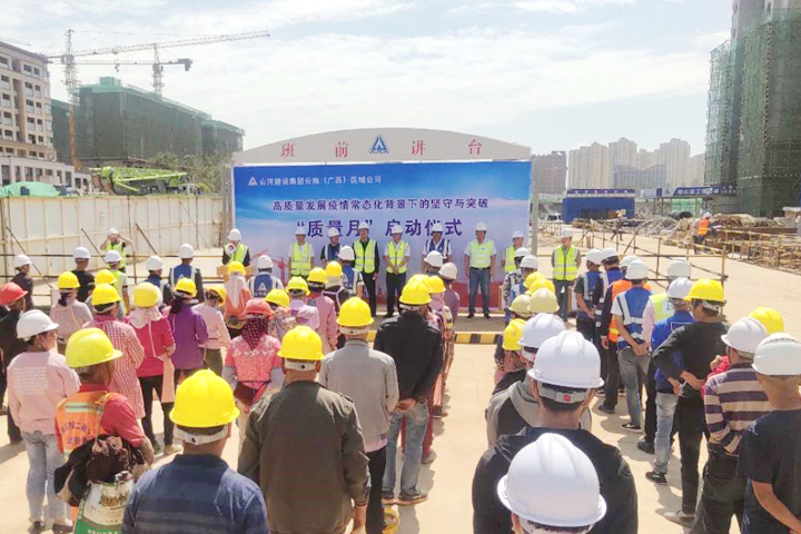 9月1日,开云电子建设集团云南(广西)公司2020年“质量月”活动启动仪式在中骏云古小镇8号地块项目举行,活动以“高质量发展:疫情常态化背景下的坚守与突破”为主题,旨在进一步强化质量意识,提升质量管理水平,切实做到逢建必优。公司工程团队,各项目部项目经理、技术负责人、质检员等150余人参加了活动。