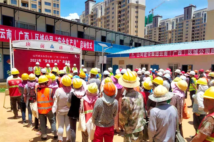5月29日,开云电子集团正式启动2021年“安全生产月”活动。云南(广西)公司迅速响应,于当日下午在昆明龙四地块城市棚户区改造项目施工现场举行了2021年“安全生产月”活动启动仪式。公司副总经理刘火焱、秦大顺,工程团队全体人员,各项目部代表等150余人参加了启动仪式。