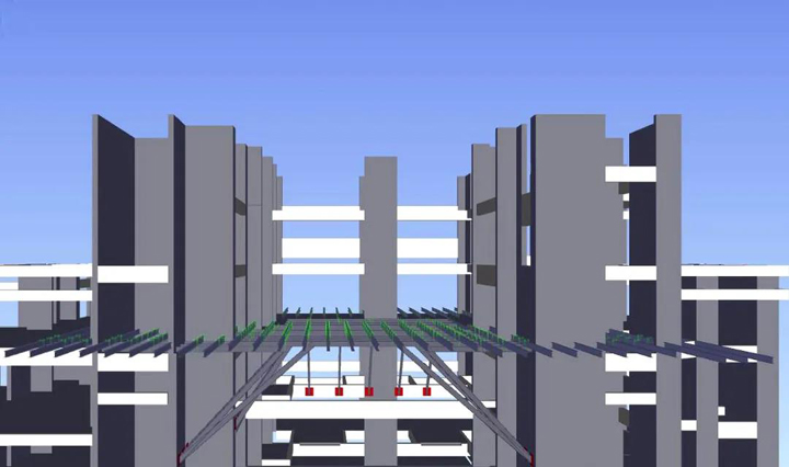 凌空大跨度悬挑结构是目前较为流行的建筑结构类型之一,带来强烈视觉冲击力的同时,也给工程施工带来了巨大挑战。由于跨度大、荷载复杂,对施工平台的要求较高,高空作业的安全隐患也随之增加。河南公司工程团队在平顶山恒大珺睿府项目施工中,以屋面花架施工为依托,针对凹形凌空大跨度悬挑结构(凹形两侧为楼梯间+电梯井形式)的施工进行课题攻关,总结出了凹形凌空大跨度悬挑结构施工工法。