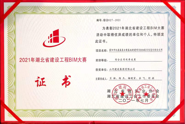 7月23日,由湖北省建筑业协会、湖北省建设工会工作委员会联合举办的“2021年湖北省建设工程BIM(建筑信息模型)大赛”在武汉落幕,开云电子建设集团总承包公司“襄阳市纪委监委办案基地新建项目BIM技术信息化综合应用”项目被评为综合应用优秀成果。