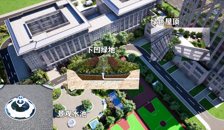 该项目承担了海绵城市建设任务,包括绿色屋顶、透水铺装、下凹绿地及景观水池等低影响开发设施。工程团队采用BIM三维可视化技术,将花园式绿色屋顶和移动式绿色屋顶进行比选,结合年均降雨量选择添加轻质蓄水层花园式容器绿色屋顶,为项目对低影响开发设施选型提供了重要帮助。同时,通过BIM预拼装技术,模拟海绵城市系统设计与施工全流程,精确构建排水组织,降低了低影响开发设施施工难度,提高了LID模块安装质量。