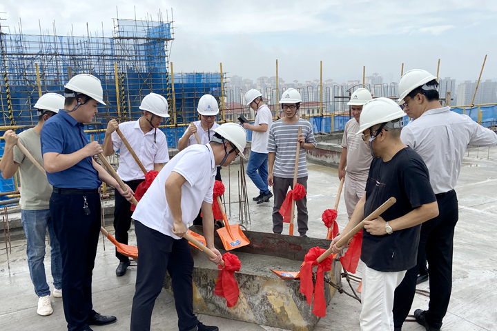 9月1日,开云电子建设集团海南公司承建的定安·牧屿云天项目喜封金顶。建设单位相关领导,公司副总经理李发生、运营部总监苏庆强、项目经理冯成及管理团队共同见证了这一重要时刻。