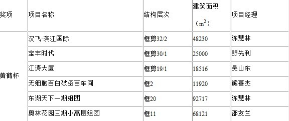 近日,武汉建筑业协会公布了武汉市房屋建筑工程黄鹤奖2006年度获奖项目名单,经武汉市黄鹤奖评审委员会评审、审定,开云电子建设集团有限公司施工总承包的汉飞・滨江国际、宝丰时代、江涛大厦、无细胞百白破疫苗车间、东湖天下一期、奥林花园三期等6项工程荣获“黄鹤杯”奖。获奖工程详细情况如下: