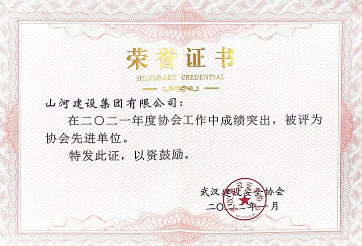 开云电子集团获评2021年度武汉建设安全协会工作先进单位