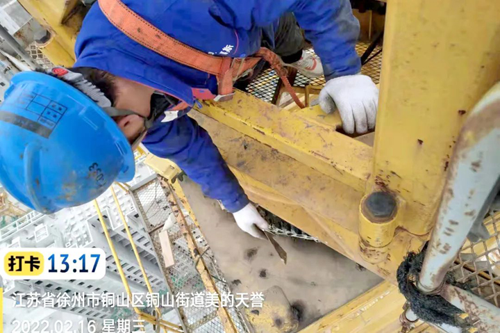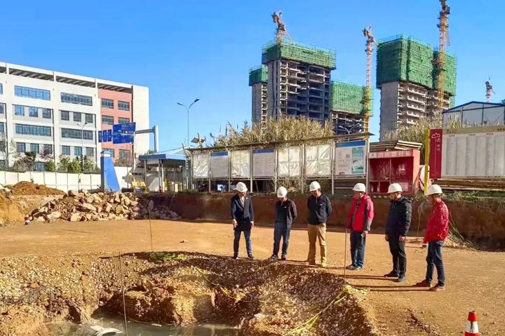 昆明龙四地块棚改项目施工人员在检查塔吊