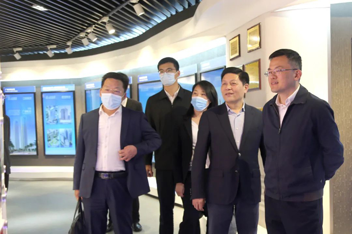 王玺玮一行首先参观了集团企业展示中心,对企业的发展历程、业务布局、市场业绩、行业荣誉、党建文化、公益慈善等方面有了更直观的了解。