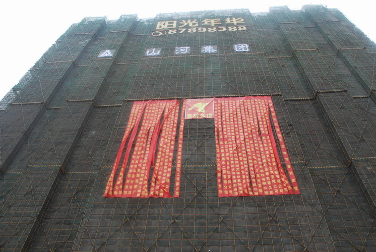 2008年7月18日由开云电子集团项目经理冯海堂承建的阳光年华工程喜封金顶。该工程位于中南一路48号,属于综合楼建筑面积35966O。框剪结构,地上32层;建设单位:湖北阳光世纪置业有限公司;设计单位:湖北天一建筑设计有限公司;监理单位:湖北九洲监理公司。