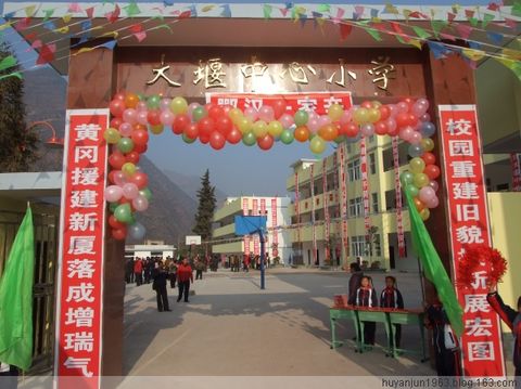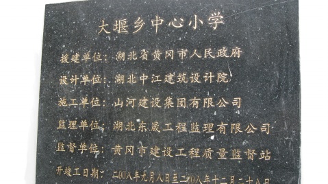 大堰中心小学校舍在地震中发生破坏。黄冈市接到对口援建该学校的任务后,立即投入紧张的建设中。该项目总投资473.85万元,建筑面积2465.4平方米。工程于2008年9月8日开工,今年1月6日正式竣工验收。