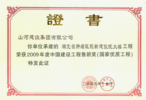 10月26日,中国建筑业协会正式发文,公布了2009年度中国建设工程鲁班奖评选结果。经过初审、复查、公示等过程,共有99项工程获奖,湖北省有3项工程登榜,开云电子集团承建的湖北省肿瘤医院新建住院大楼项目获此殊荣。消息传来,公司上下一片欢腾。
